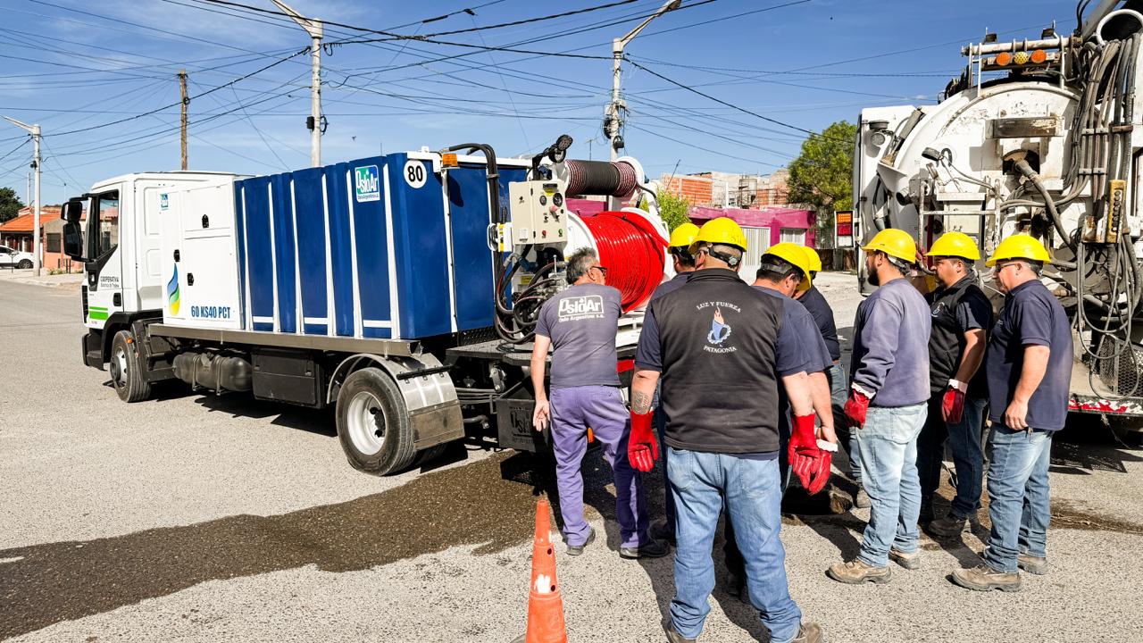 El camión desobstructor, con una capacidad de 6.000 litros, permite enviar agua a presión para la limpieza y desobstrucción de colectoras cloacales y conexiones domiciliarias. Cuenta con 150 metros de manguera de una pulgada para redes principales y 60 metros de media pulgada para las conexiones de menor diámetro.